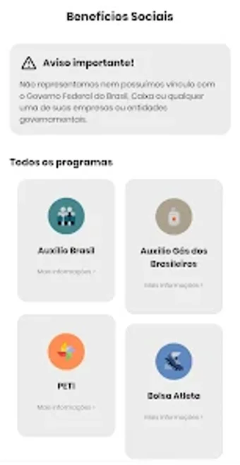 Consulta Benefícios Sociais is een gratis Android-app die gebruikers helpt bij het navigeren door sociale programma's van de Braziliaanse overheid. De app biedt uitgebreide informatie over verschillende voordelen zoals Auxílio Brasil en Auxílio Gás, inclusief wie in aanmerking komt, de waarde van de voordelen en hoe aan te vragen. Gebruikers krijgen ook toegang tot betalingsschema's en veelgestelde vragen, waardoor het een waardevol hulpmiddel is voor diegenen die afhankelijk zijn van deze programma's.